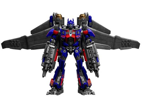 Experience the ultimate Transformers collector figure with this officially licensed DX Jet Wing Optimus Prime. This 5 1/4-inch tall premium scale model kit figure features authentic movie accuracy from the blockbuster trilogy, complete with LED-illuminated eyes and chest for genuine Cybertronian energy effects. The model kit features 20 movable points of articulation and comprises of 163 total pieces.