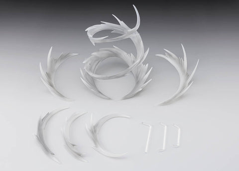 This effect is designed to look like a fiercely swirling, rising gust of wind. Various large and small parts can be combined to enhance a variety of scenes. Each part has a hole that allows it to be displayed in a floating pose using a Tamashii STAGE (sold separately).