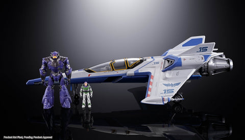The XL-15 Spaceship, as piloted by Buzz Lightyear in the Pixar film "Lightyear," joins the Chogokin series! Featuring fine detail and diecast metal parts, this faithful portrayal puts you righ in the action. [Set Contents] Main Body, Landing gear, Buzz Lightyear figures (2 types), Zurg figure, Stand